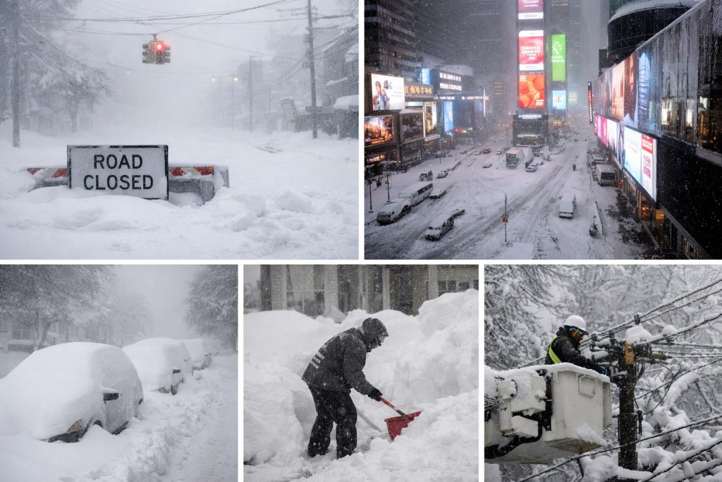 Authorities declared states of emergency and imposed travel bans as tens of millions of residents stayed indoors under blizzard warnings. The storm caused widespread disruption—schools shut down, legislative sessions in the U.S. Congress were postponed, train services were altered, public transit systems halted, and even DoorDash paused operations in New York City.